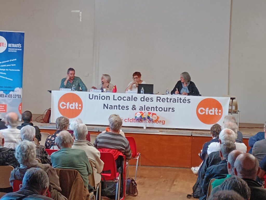 Le 7 octobre 2025, l’Union Locale des Retraité·es CFDT de Nantes et alentours (ULRAN) a tenu son assemblée générale statutaire avec 110 participant·es. L’Assemblée générale a dressé le bilan de l’activité de l’ULR qui compte 1353 adhérent·es à travers son réseau de sections locales sur l’agglomération nantaise et au-delà. Elle a procédé au renouvellement du Conseil de 23 personnes (8 femmes, 15 hommes). Soizic Baudouin a été réélue comme secrétaire-générale de l’ULRAN